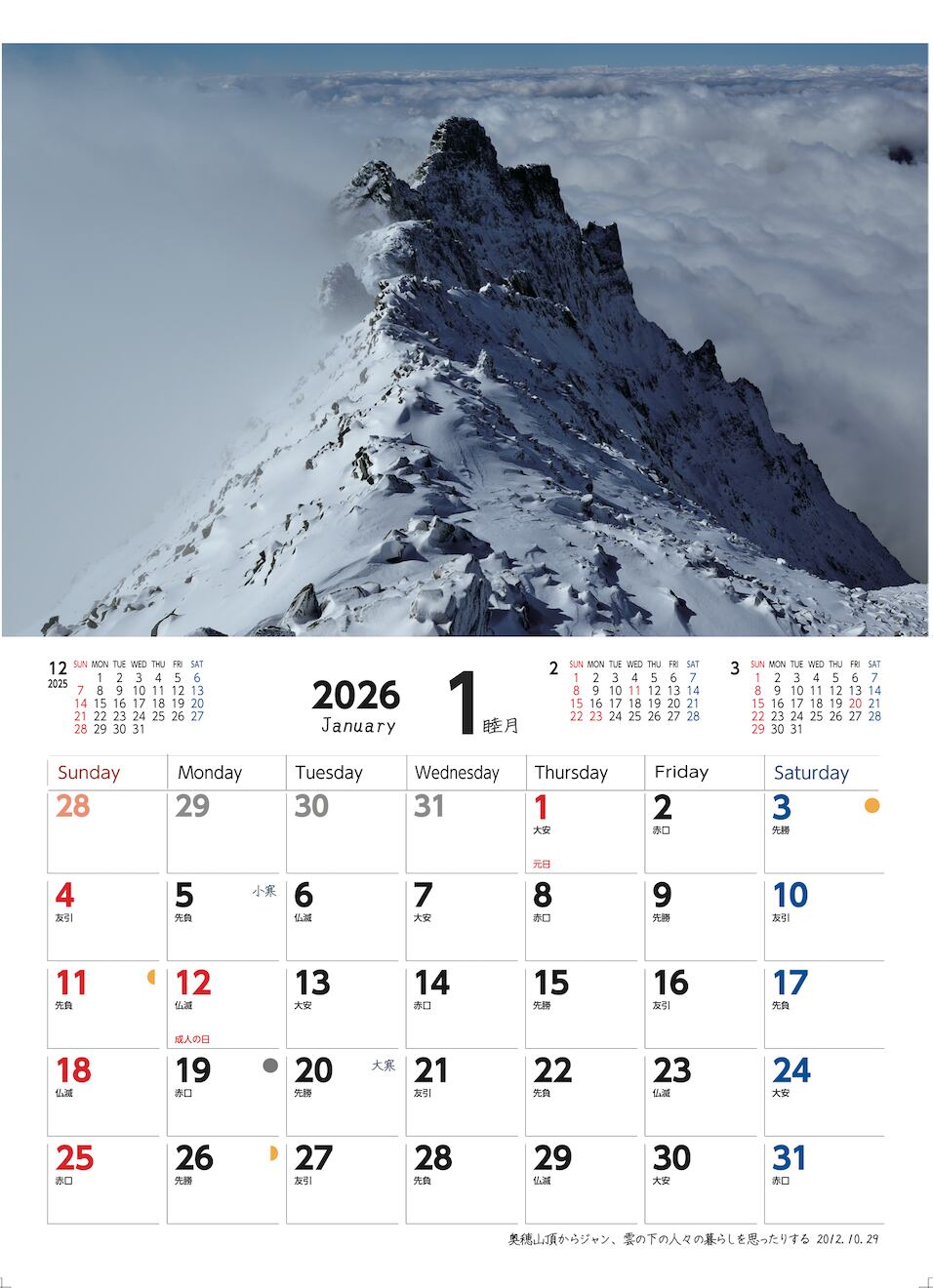 2026穂高 壁掛けカレンダー